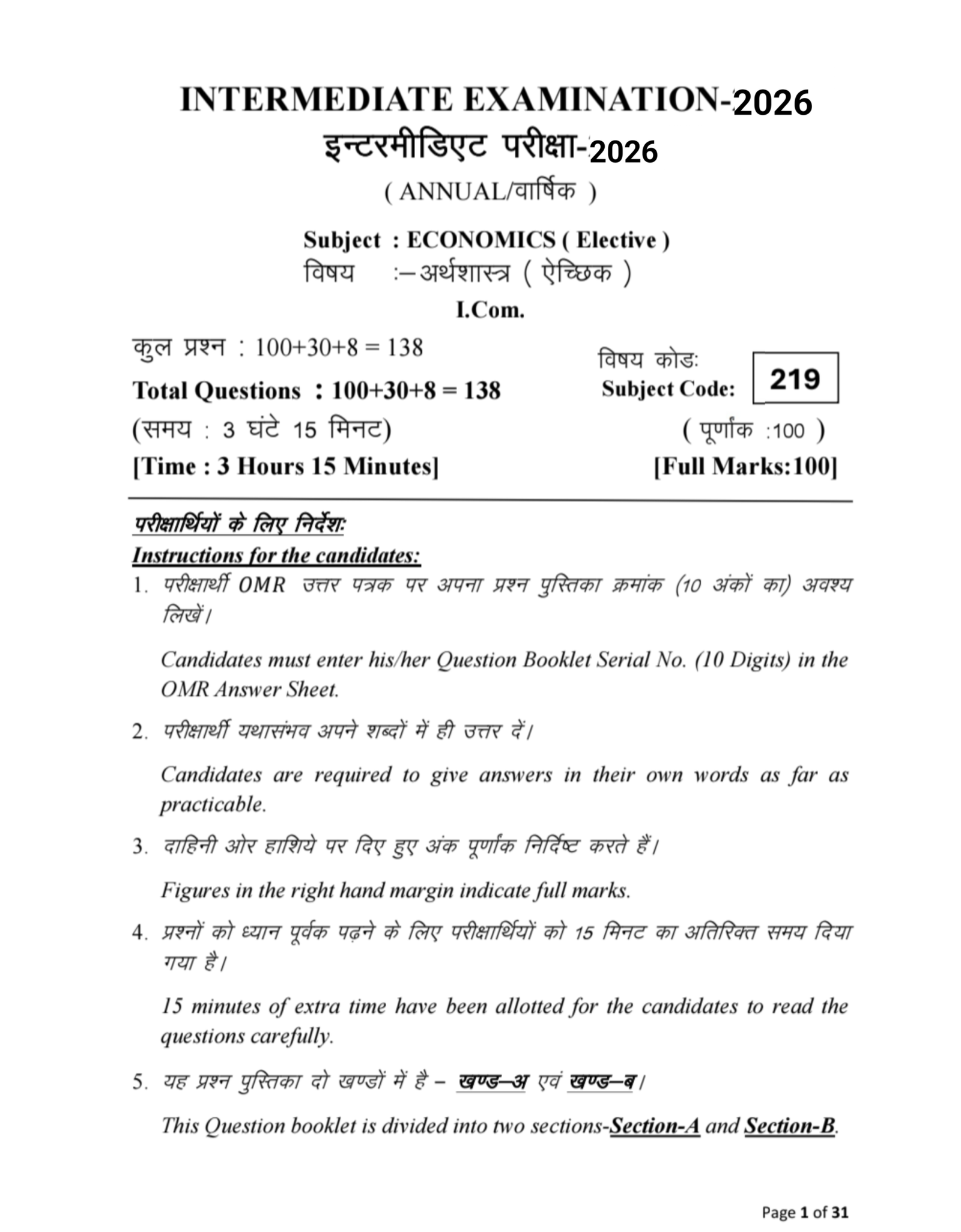 जो इकोनॉमिक्स का पेपर आज आयोजित कराया जाएगा इस Economics के पेपर में कुल 10 सेट बनाए गए हैं।जिसमें सेट A,B,C,D,E,F,G,H,I,J तक सेट कोड दिया जाएगा